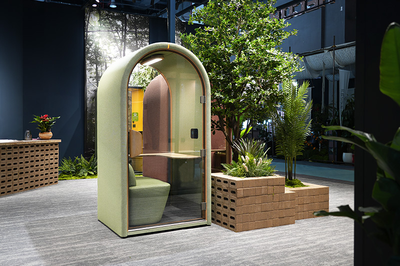 By integrating modern design language with green ecological principles, we ensure that the soundproof booth's practical functionality and natural aesthetics complement each other perfectly. The transparent visual design maintains a connection with the surroundings, the use of eco-friendly materials conveys a commitment to wellness, and precise acoustic technology creates an absolutely private and serene domain. In every detail, the promise of "Nature Coexistence, Office Ecology, and Sustainable Well-being" is thoughtfully integrated.